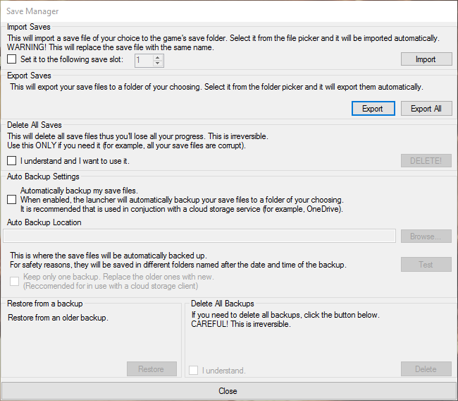 This package allows you to add save management features (Import, Export, Backup and Restore) to your game in a simple and seamless manner.